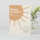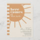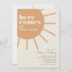 Notre modèle "Voici venir le soleil" avec son design bohème et ensoleillé présente une typographie ludique sur une palette de couleurs orange ivoire et chamois avec une véritable sensation vintage. Ce design est tout simplement adorable pour un événement minimal moderne en célébration de votre petit rayon de soleil. Trouvez des articles assortis à associer à votre réunion de baby shower dans notre boutique !