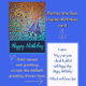 Un voilier survolant les vagues sous un ciel ensoleillé. L'eau et les vagues sont claires et bleues foncées avec des reflets du ciel coloré. Le ciel est rempli de bleus, jaunes, oranges et rouges. Le graphique a été donné une apparence métallique brillante. Joyeux anniversaire est sous le graphique en bleu clair contre un arrière - plan bleu foncé. L'intérieur de la carte dit : "Que vos années soient remplies de jours heureux. Joyeux anniversaire !"