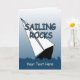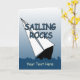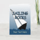 Illustration graphique d'un voilier penché avec le texte Sailing Rocks sur une carte de voeux personnalisée. La carte contient des modèles texte pour votre personnalisation. OEuvre originale : Copyright Charmaine Paulson