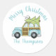 La voiture recouverte de bois se dirige vers la maison depuis le terrain de Noël. Il s'agit d'un design idéal pour toute salutation saisonnière ou transfert sur n'importe quel produit avec un arrière - plan bleu ciel et un sol recouvert de neige. Whimsical, coloré, design amusant pour tout le monde.
