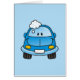 Voiture de dessin animé bleu souriant avec bulles de savon.