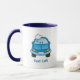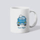 Voiture de dessin animé bleu souriant avec bulles de savon. Texte personnalisé des deux côtés.