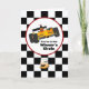 "You're in the Winner's Circle" carte d'anniversaire de course pour cette petite canne chaude spéciale avec une voiture de course jaune sportive dans un cercle de gagnants blancs surligné en rouge avec un arrière - plan à damiers noir et blanc ... un grand choix d'anniversaire pour tout garçon ou fille qui aime les voitures et la course.