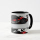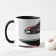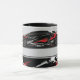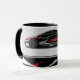 Cette tasse à café est montrée avec une photo d'art d'une voiture de sport. Customisez cet objet ou achetez tel quel. Image stock vecteezy.com