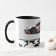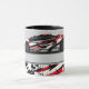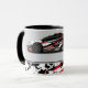 Cette tasse à café est montrée avec une photo d'art d'une voiture de sport. Customisez cet objet ou achetez tel quel. Image stock vecteezy.com