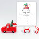 Une superbe voiture rouge à l'aquarelle et au crayon porte des cadeaux et un sapin de Noël. Célébrez le grand jour avec "Christmas Tree Car". Baby shower d'hiver. Éléments correspondants disponibles.