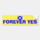 Un adhésif pour pare-chocs pour des défenseurs de l'indépendance pour l'Ecosse du gouvernement BRITANNIQUE de Westminster. Il y a un graphique du drapeau écossais avec le slogan pour toujours oui dans le lettrage bleu profond sur un arrière - plan jaune. Le référendum écossais de l'indépendance a eu lieu le 18 septembre 2014 quand les gens habitant et travaillant en Ecosse ont voté l'avenir du pays comme nation indépendante. 45% des personnes votées pour indy. Beaucoup ont uni pour former les 45 et elles continuent à poursuivre le rêve de l'indépendance. Vous pouvez changer la couleur des mots et l'arrière - plan avec le bouton de personnaliser.