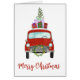 Noël... Avec un clin d'oeil et un regard, une autre année a passé et c'est à nouveau Noël. Une voiture rouge rétro avec des cadeaux colorés emballés fait une grande carte.