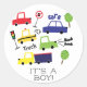 Colorful Cars & Trucks Baby shower Favoriser l'autocollant pour un baby shower pour garçons. Objets correspondants disponibles dans notre boutique.