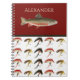 Carnet Fly Fishing Flies Rustic Saumon Aquarelle design. Ce design est idéal pour les cadeaux pour les pêcheurs. Idéal pour les propriétés de location de vacances ou de montagne Lake stream ou ocean home. Catalogue vintage peinture de Mary Orvis
