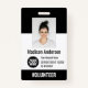 Personalized Volunteer Name, Company logo, Photo, Barcode or Qr Code ID Badges with Clip or Lanyard featuring minimalist cool black and white colors.