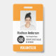 Personalized Volunteer Name, Company logo, Photo, Barcode or Qr Code ID Badges with Clip or Lanyard featuring boho orange and white colors.