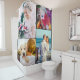 4 photos personnalisées rideau de douche modèle avec 4 photos changeables et un cadre noir arrondi. Un grand cadeau de salle de bain unique pour un être cher en famille.