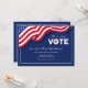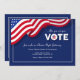 Une invitation patriotique en bleu avec un drapeau américain. Des lettres blanches en gras lisent : VOTE! La carte est facile à customiser avec votre libellé, police, couleur de police et choix de six types de papier. Pas exactement ce que tu cherches ? Tous nos produits peuvent être conçus sur mesure pour répondre à vos besoins sans frais supplémentaires.Contactez-nous simplement à askpixieprints@aol.com