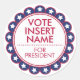 Que vous fassiez campagne pour obtenir des votes pour diriger le pays, votre ville, votre école, votre travail, ou soutenir votre candidat favori de manière indépendante, ces autocollants obtiendront votre message remarqué. Customisez facilement ces autocollants ronds haut de gamme avec votre propre nom, titre ou message. Les plus petits autocollants peuvent être utilisés comme scellés pour vos campagnes de courrier. Ce design présente des couleurs rouges, blanches et bleues avec des étoiles blanches. (Astuce : pour un titre de candidat à deux mots comme "Vice-président", vous pouvez changer le mot "Pour" en "Vice".) Ce sont des autocollants professionnels résistant aux rayures imprimés sur du papier sans acide. Disponible dans une finition brillante ou mate en taille 3 pouces et 1,5 pouce. Quantité minimale de commande faible et pas de frais de configuration. Toutes les commandes sont exécutées par Zazzle sur les produits Zazzle. MISOOK n'a PAS vos informations de personnalisation, d'expédition ou de carte de crédit, alors contactez Zazzle directement pour toute question, y compris des questions sur customiser votre design.