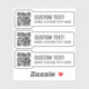 Décal de vinyle avec votre code QR personnalisé et deux lignes de texte personnalisé. Idéal pour les entreprises de laisser leurs clients scanner pour plus d'informations, les offres, menu en ligne, de payer etc. Les autocollants sont résistants à la mouche, à l'eau et aux rayures. IMPORTANT ! VOUS DEVEZ REMPLACER LE MODÈLE DE CODE QR PAR VOTRE PROPRE CODE QR !
