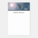 Un grand coussin de notes collantes personnalisé avec votre nom et avec l'Avro Vulcan, un avion militaire en haut du coussin. L'Avro Vulcan est une aile delta, un bombardier stratégique, un avion militaire, avec la baie de la bombe ouverte.