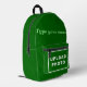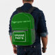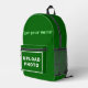 Sac à dos couleur verte que vous pouvez customiser pour mettre votre nom et votre photo. Veuillez vérifier l'apparence après avoir tapé votre nom et télécharger votre photo. Si l'apparence vous plaît, vous pouvez passer votre commande maintenant. Si vous avez besoin de redimensionner et déplacer votre nom et photo pour s'adapter au modèle ou selon l'apparence que vous préférez, s'il vous plaît changer dans l'outil de conception. Des exemples de modifications que vous pouvez apporter à l'outil de conception sont la modification de la couleur arrière - plan, de la couleur de police et du style de police. Personnalisez-le. Prenez votre nom et votre photo dessus. Sac à dos pour transporter vos affaires n'importe où. Sac à dos comme sac de camping.