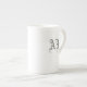 Un modèle de monogramme texte sur une tasse de porcelaine blanche.