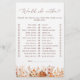 Cet article est un mélange captivant de chaleur automnale et d'élégance bohème qui promet de rendre votre célébration inoubliable. La pièce maîtresse de cette pièce est une citrouille de belle facture, délicatement peinte dans des tons doux, symbolisant l'abondance et la joie de la saison automnale. Autour de la citrouille, vous découvrirez une étonnante palette de fleurs d'aquarelle et de feuillage dans des tons riches de terre cuite, orange, évoquant les couleurs vives de l'automne. Cet article capte magnifiquement l'esprit d'une douche nuptiale automnale, mêlant charme rustique et élégance bohème pour créer un design à la fois intemporel et enchanteur. Avec son étonnant mélange d'aquarelle et d'éléments boho-chic, cet article promet une célébration aussi unique et spéciale que la mariée elle-même. Cliquez sur le bouton "Customiser" pour personnaliser davantage ce modèle. Vous pourrez modifier le style, les couleurs et les tailles. Éléments correspondants disponibles.