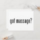 Façonné après cette publicité très populaire, nous avons ce design super mignon "Get Massage?" sur des tonnes de produits pour que vous puissiez l'utiliser sur vos cartes de visite de massage, de cartes de remerciement, ou de donner comme cadeaux clients. Disponible en noir ou blanc cassé.