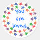 Deux cercles d'étoiles colorées entourent la déclaration, "Vous êtes aimé", imprimée sur des autocollants. Partagez l'amour. Merci pour les achats CherylsArt sur Zazzle : http://www.zazzle.com/CherylsArt*/