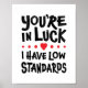 Une ligne de ramassage rusée ou une légère insulte posée - c'est à vous de décider ! Vous êtes chanceux, j'ai des standards bas est une citation de datation sarcastique qui peut avoir toute une gamme de significations différentes.