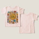 Ce design ferait une impression de t-shirt pour tout-petits joyeuse et ludique. L'élément principal est un grand soleil jaune vif au centre avec l'expression "Ur my Sunshine" écrite dans une police ludique et dessinée à la main. Autour du grand soleil sont de petits soleils, des étoiles et des nuages, tous dotés d'expressions mignonnes, ressemblant à des dessins animés. Certains soleils portent des lunettes de soleil, des casquettes et d'autres accessoires amusants, donnant à la conception une sensation fantaisiste et légère. Le mélange éclatant de pastels jaunes, orange, bleus et doux rend cette impression visuellement attrayante, parfaite pour une tenue amusante et énergique pour tout-petits. L'oeuvre rayonne de chaleur, de joie et de positivité, ce qui en fait un design idéal pour les petits enfants.