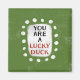 Le texte gras "You Are A Lucky Duck" est centré sur un arrière - plan vert. Le texte orange et noir est posé sur un rectangle blanc avec de grands points blancs texturés autour, offrant un contraste ludique sur le fond de couleur solide.