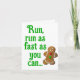Le texte dit. "Courez, courez aussi vite que vous pouvez. Tu ne peux pas m’attraper, tu es un vieil homme. Joyeux anniversaire. Un homme en pain d'épices est à l'avant et à l'intérieur de la carte.