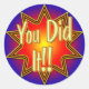 Vous l'avez fait! est un commentaire que nous voulons tous entendre, alors pourquoi ne pas le donner comme un autocollant. Cette starburst dressée contre un arrière - plan bleu donne un cri brillant que les enfants vont aimer.