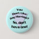 Vous n'aimez pas le mariage gay ? Alors, n'en avez pas ! Oh, tu veux dire que tu ne veux pas que les AUTRES aient des mariages homosexuels non plus ? Oh, tu veux dire que tu veux interférer dans la vie des autres et forcer tes normes à la gorge ? Oh! Attendez-vous à des bouches qui donnent à réfléchir, car ce bouton met à nu les interférences de la police de la moralité. Ensuite, vous pouvez aller directement en avant et poursuivre votre propre chemin vers la joie comme vous le jugez bon.
