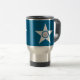 Mug de voyage avec le drapeau de Houston, Texas; drapeau bleu avec le sceau de Houston dans une étoile blanche, avec une illustration d'un train