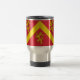 Travel Cup avec design avec un drapeau du comté historique d'Anglesey, au Pays de Galles, Grande-Bretagne; drapeau rouge avec chevron jaune et trois lions; les bras attribués de Hwfa ap Cynddelw, l'insigne traditionnel du comté