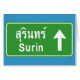 Funny Surin, Isan, Thaïlande Devant l'enseigne bilingue de la route thaï écrite en Scripts de langue thaï et anglaise. Vous pouvez redimensionner et customiser le signe. Notre magasin propose une grande sélection de T-shirts, casquette, tasses et bien plus encore, tous avec des motifs inspirés du dialecte Isaan et de la langue thaïe.