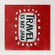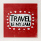 "Travel Is My Jam" est un design de texte amusant avec une forme d'accent blanc entourée de points blancs texturés.