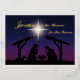 Cette belle carte de Noël représentant une scène de la Nativité offre une vue nocturne de l'étable et de la crèche avec le bébé Jésus, Marie et Joseph regardant le Seigneur Jésus avec une étoile brillante au-dessus. Les mots "Jésus est la raison de la saison" sont réalisés en véritable feuille d'or dans la partie supérieure de la face avant de cette carte plate. Le dos comporte un cadre en forme de parchemin avec un aspect or SIMULÉ avec un texte de couleur or pouvant être personnalisé pour dire ce que vous voulez.