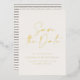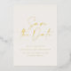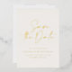 Carton de mariage 'save the date' en feuille métallique avec une typographie moderne et élégante et un design de dos rayé. Les couleurs peuvent être personnalisées.