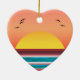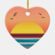 Magnifique ornement double face en céramique avec une vue romantique sur le coucher de soleil d'un art numérique de paquebot de croisière illustration par XG Designs NYC. Ce design est un coucher de soleil romantique sur la mer à l'horizon dans de belles couleurs vives d'orange, pêche et jaune, avec des oiseaux volant dans le ciel. Au fond de l'ornement, on peut voir une balustrade et la mer juste au-delà. Une merveilleuse idée cadeau de croisière pour quelqu'un qui aime la croisière ou admire les navires, et un ajout merveilleux à toute collection de décorations. Ce décor de croisière est également une excellente idée pour une soirée à thème de croisière, et un match à nos invitations et des créations de soirée à thème de croisière. Ce design est disponible dans notre magasin sous différentes formes et comme un ornement personnalisé et personnalisé aussi! Pour plus de styles et de modèles d'ornements thématiques de croisière, invitations, timbres, faveurs et cadeaux, visitez notre boutique!
