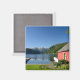 Aimant avec vue sur le fjord Hardangerfjord avec quelques montagnes et un boathouse rouge d'Ulvik, Hordaland, Norvège.