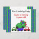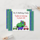 Une invitation amusante à l'anniversaire avec des wagons et des voitures colorés. Vert, bleu et rouge. Le wagon vert est rempli de ballons d'anniversaire colorés. Customisez avec toutes les informations de votre anniversaire selon vos besoins.