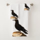 Raven Black Bird, Corneilles, Blackbirds Serviette de salle de bain ensemble - Corbeau perché sur un arbre rond noir et blanc décoration maison serviettes de bain décoré noir et blanc. Prêt à saluer vos invités avec votre animal d'esprit. Le Corbeau est en effet un oiseau intelligent. L'arrière - plan que vous pouvez customiser. texte, couleur, style de votre totem et l'amour de cet oiseau perché sur un arbre log nature sauvage.