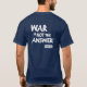 Whether you're marching, traveling, or just going about your day, this tee lets your values speak for themselves. War is not the Answer. Not now, not ever.