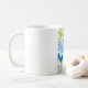 Voici un Mug Floral bleu blanc et jaune, dessiné à la main par moi et numérisé pour Zazzle.