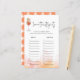 Ce jeu de douche nuptiale d'été amusant a un thème italien Aperol Spritz avec des accents d'agrumes. L'illustration frontale est un spritz Aperol aquarelle avec des bouquets d'hibiscus et de fruits. Le dos est assorti d'une motif en tranche orange aquarelle et d'un arrière - plan blanc minimaliste. C'est amusant et fantasque, parfait pour les douches d'été pour cocktails nuptiaux.