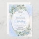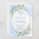 Make your special day unforgettable with this elegant watercolor wedding invitation, thoughtfully designed to shine with Zazzle’s premium print quality. Featuring soft pastel blue hydrangeas, delicate eucalyptus and greenery foliage, and a refined gold glitter oval frame, this invitation blends timeless romance with modern sophistication.
