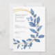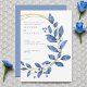 This elegant wedding invitation features a delicate watercolor design of blue leaves, complemented by shimmering gold accents. Perfect for a modern or whimsical wedding, this custom invitation is sure to impress your guests. The soft color palette and intricate details create a sophisticated and memorable impression, making it ideal for a unique and stylish wedding celebration.