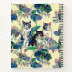 Journal in a a watercolor-style illustration of three black-and-white cats surrounded by lush, vibrant green foliage, with purple and pink flowers. The composition is dreamy and nature-infused, blending realism with fantasy.