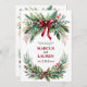 Bring festive charm to your celebration with a watercolor Christmas greenery wedding invitation featuring lush evergreens, pinecones, holly berries, and a classic red bow greenery wedding design. Ideal for a rustic winter wedding invitation or holiday ceremony, this Christmas wedding invitation card sets a warm, elegant tone for December nuptials. Provided as an editable printable 5x7 template, it’s easy to customize all wording into a personalized December wedding invite.
