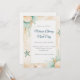 A serene watercolor coastal chic wedding invitation featuring hand-painted seashells, sea stars, and soft seafoam green leaves set against warm sandy hues. The airy design and elegant script fonts capture the effortless beauty of a seaside celebration, perfect for beach or destination weddings. Easily personalize with your names, date, and ceremony details.